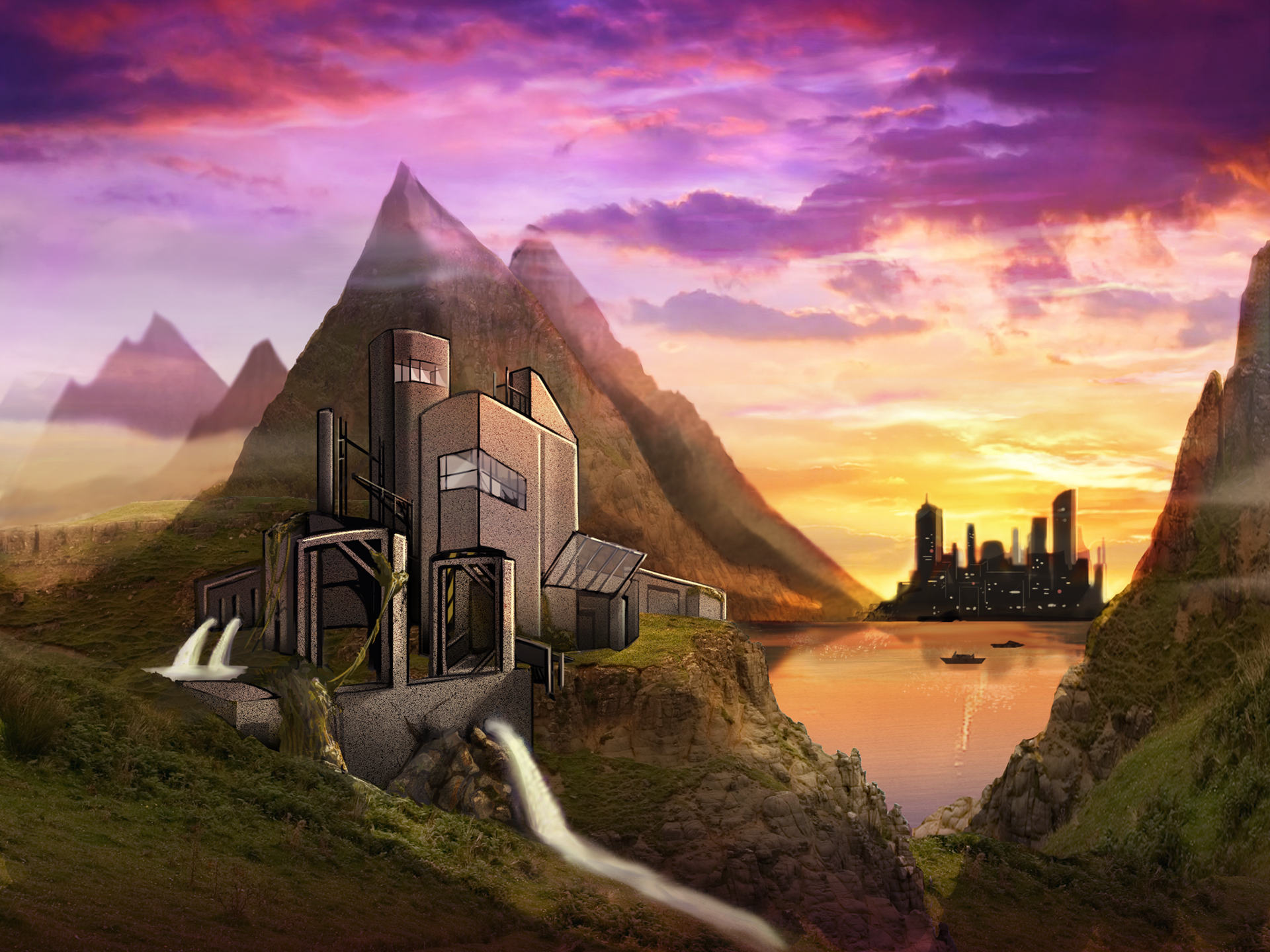 A matte painting to demonstrate each step of the process of using a base plate and layers in photoshop.
